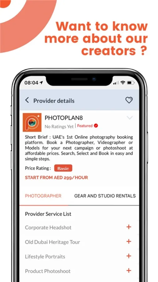 PHOTOPLAN8 is UAE’s 1st On-demand photography booking platform, which provides a curated list of service providers, offering their best quality of work at affordable prices. Customers can easily search, select and book the service providers, based on their budget, schedules, or creative style requirements.