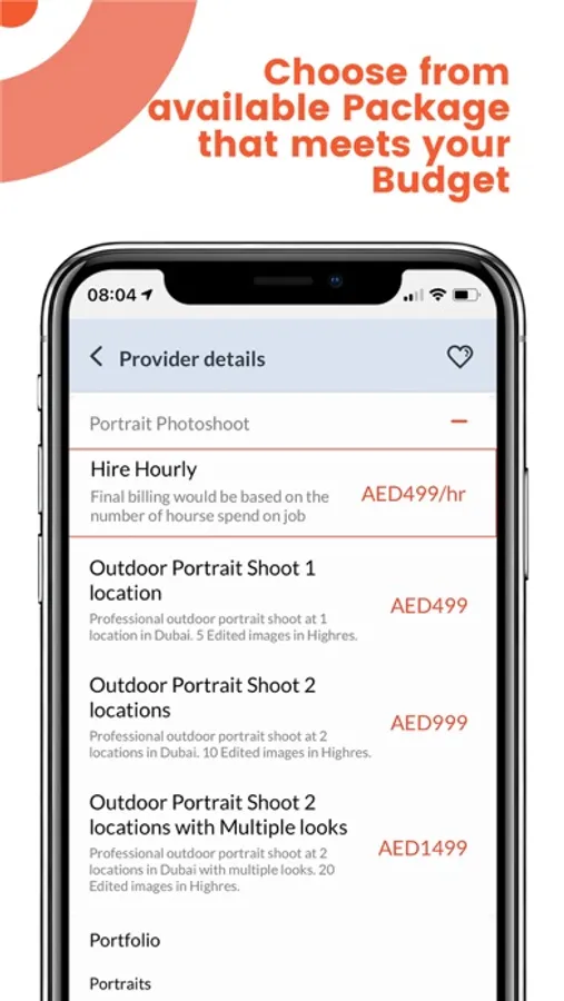 The providers profile page also lists the Services and packages offered by them, to help you select the one that fits your needs, as per their predefined packages, which clearly list the deliverables for the booking.