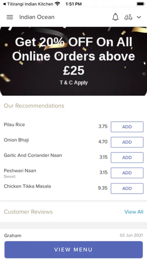 Thank you for visiting Indian Ocean in Bramford, We hope you enjoy our online ordering app and your food.