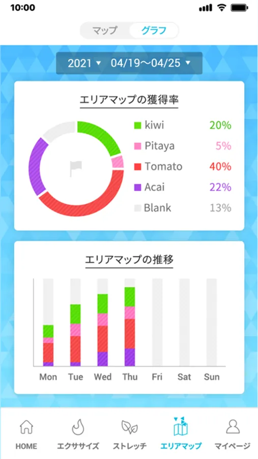 The area of the participating teams will expand depending on the result of the exercise judgment. Protect your area by exercising regularly so that your enemies don't take over the area!