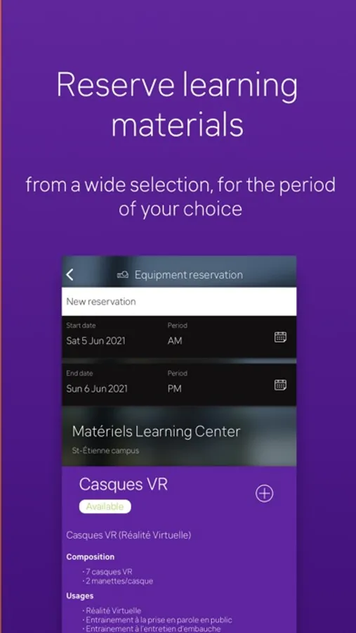 The Learning Center at École des Mines de Saint-Étienne offers various services from a mobile application:
