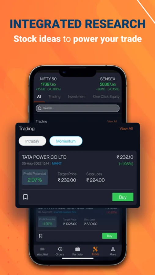 User-friendly interface: Check your stocks' real-time via a clean UI - live Profits and Loss (P&L) monitoring, and predefined, personalised watchlists.