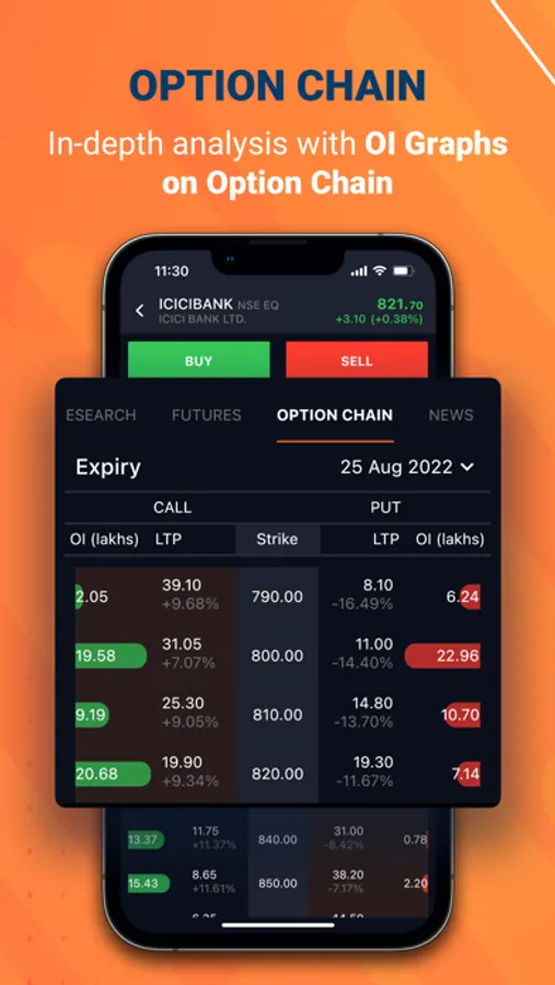 Commodity and F&O Trading: View the Option Chain (OI) with integrated OI graphs for in-depth analysis of your F&O and commodity trades.