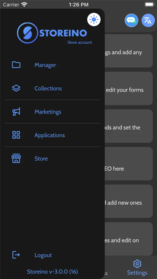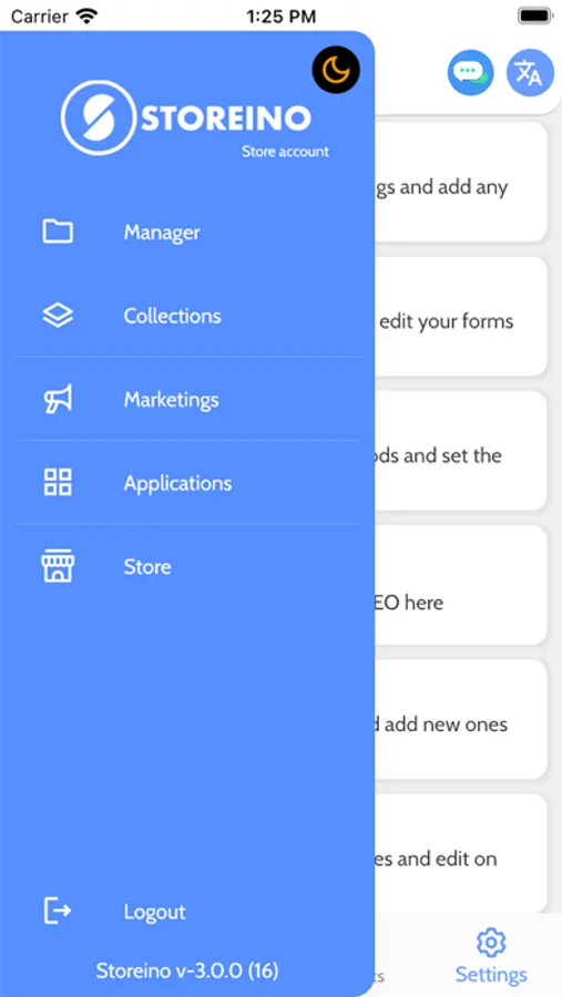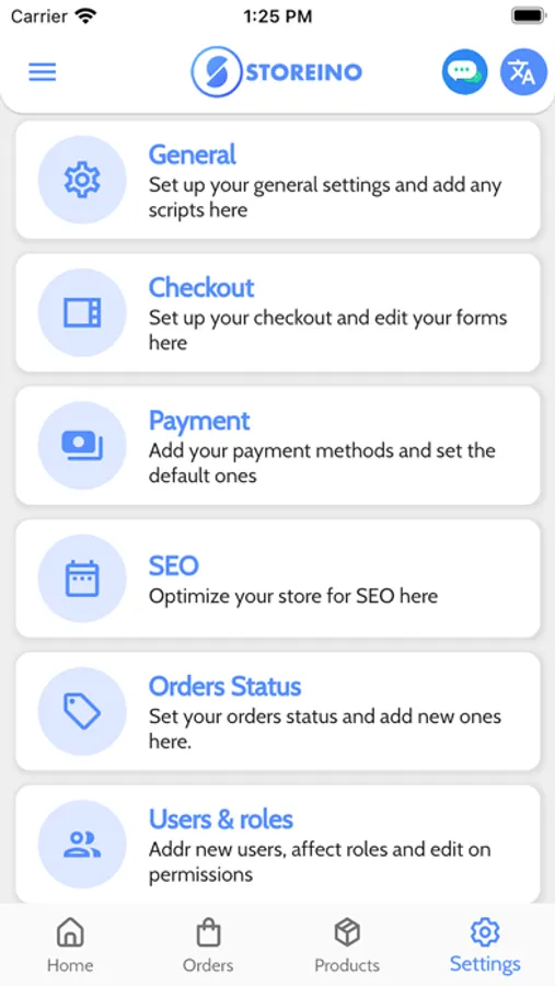 On Storeino application you can: