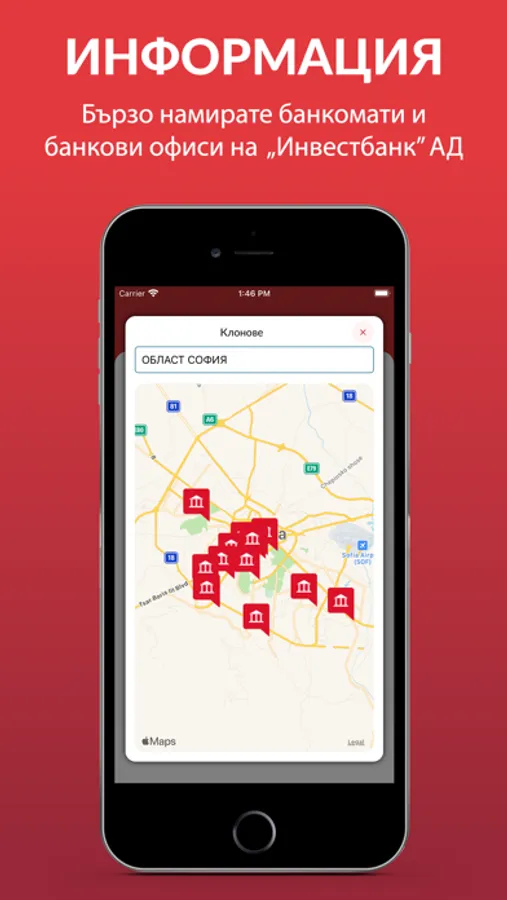Приложението позволява лесно да намирате най-близката локация на АТМ или офис на Инвестбанк АД. Бързо да проследите валутни курсове или да се информирате за банковите тарифи и лихвени проценти.