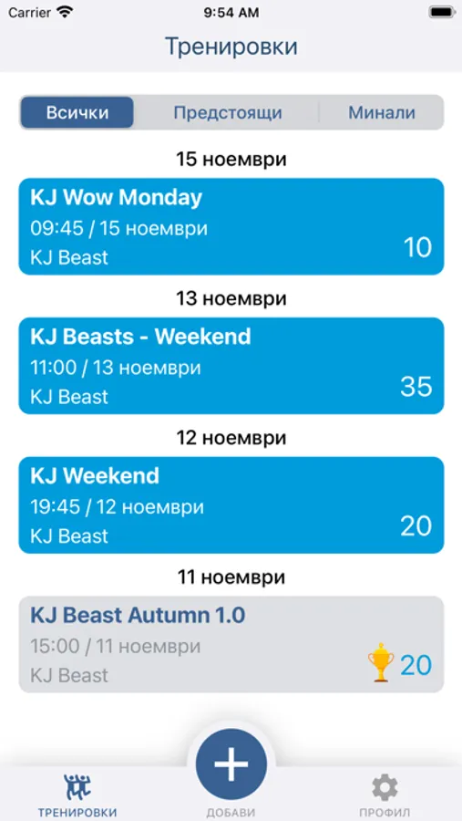 KJ Tiger дава възможност на kangoo треньори и ентусиасти да споделят събития, тренировки и постижения.