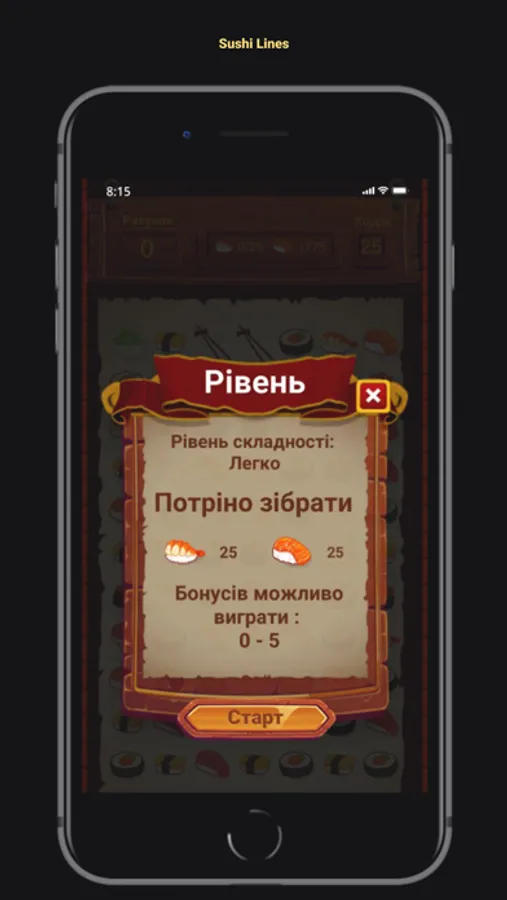 Sushi Lines- це гра три в ряд в якій тобі потрібно збирати суші.