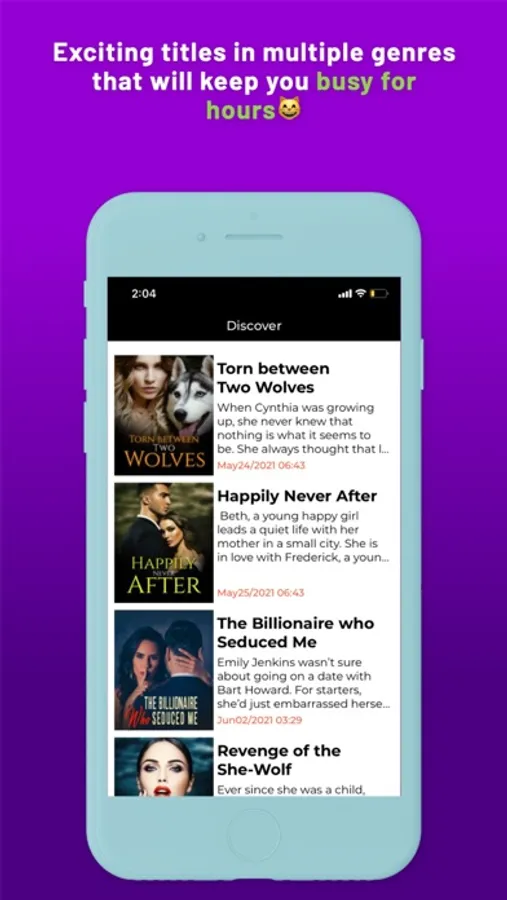 You will discover passion, infatuation, romance, love, longing, suspense, heart-break, deceit and more in our stories. Vampires and werewolf stories will take you to a ride through love, attraction and betrayal when you read about the "Wolf who loved a Vampire". Get carried away by our bad billionaire stories including "The Billionaire who seduced me" where twists and turns keep you on the edge as you flip every page. Get your fill of Alpha stories including "Taming of the Alpha" and more.