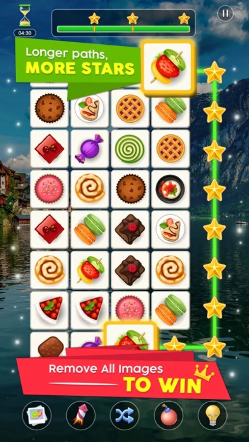Connect tiles with a great number of pictures in pairs within the limited time. As you crush all the tiles on the board, you can win the level!