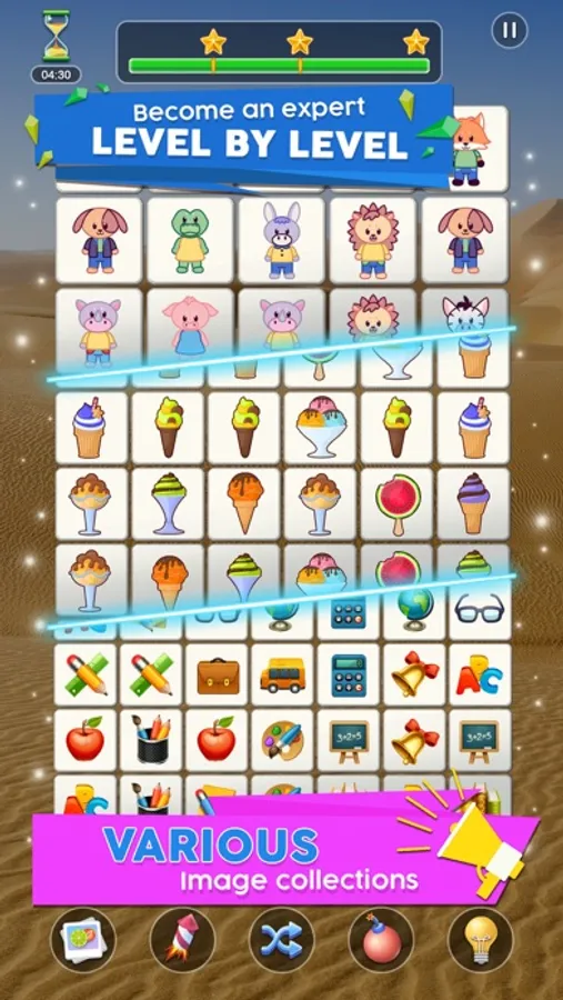Become a tile master level by level! Play faster and faster to train your brain and exercise the link technology! Ready to fully enjoy the collection of various pictures on the tiles.