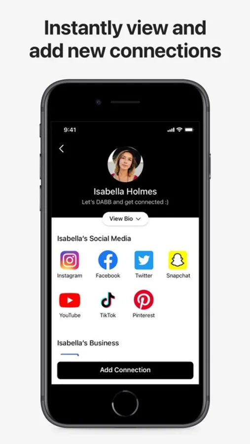 Your DABB connections automatically record everyone you meet. Access their DABB profile anytime & always stay connected.