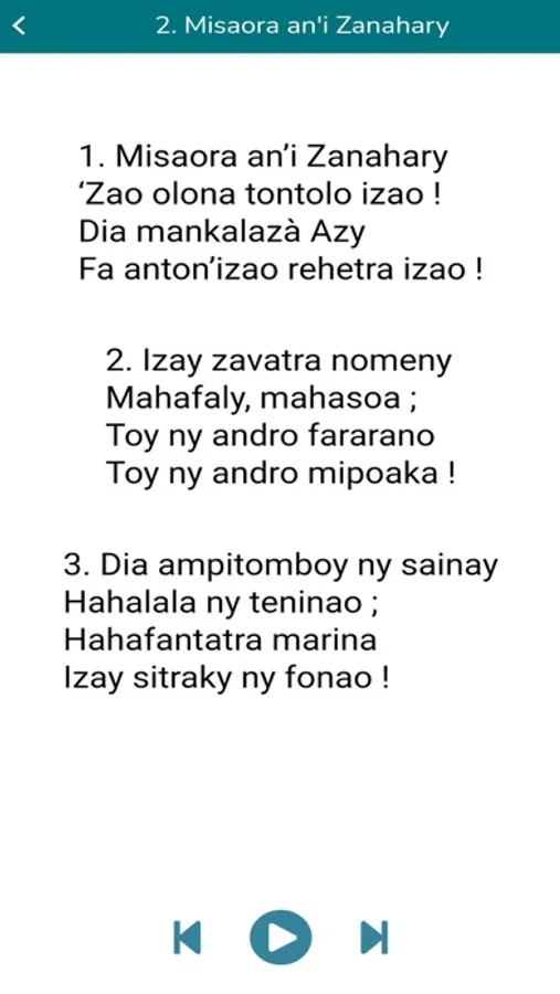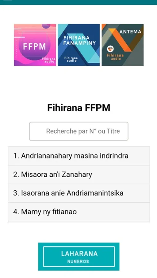Vous y trouvez les catégories de chants comme dans la version papier du Fihirana.