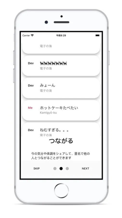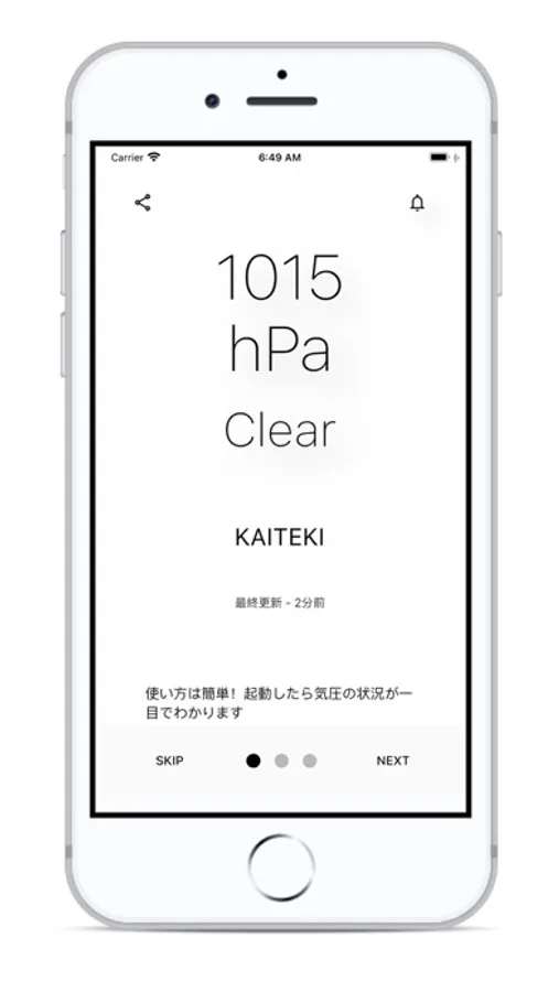 気圧の変化に弱い人同士がゆるく繋がるコミュニティアプリ、それがkiatsuです。デザインも使い方も体験もとってもシンプル。サクッと気圧をチェックして憂鬱な気持ちをシェアしてみましょう!