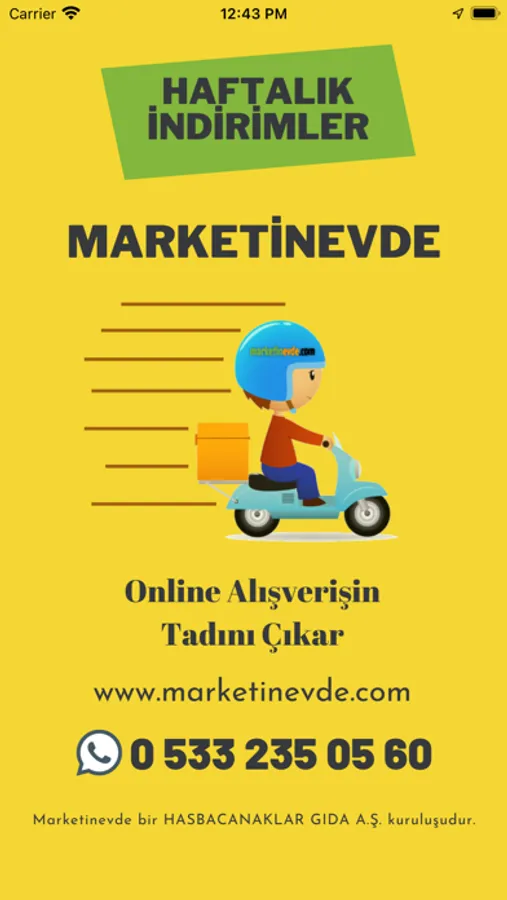 İşte tam sana göre bir market, evine kadar geliyor. Marketinevde ile bütün market alışverişini ev konforunda yap, dakikalar içerisinde evine gelsin. Bol çeşit, uygun fiyatlar, haftalık kampanyalar ile zahmetsiz alışverişin ve temassız teslimatın tadını çıkar. Evindeki market ile ihtiyaçlarını erteleme, evinin konforunda siparişini ver, dakikalar içinde kapına gelsin.