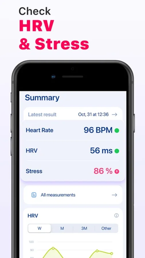 - Heart rate variability. You can tell a lot by the time in between each heartbeat. HRV measures this time and gives you an indicator of how your heart health is.