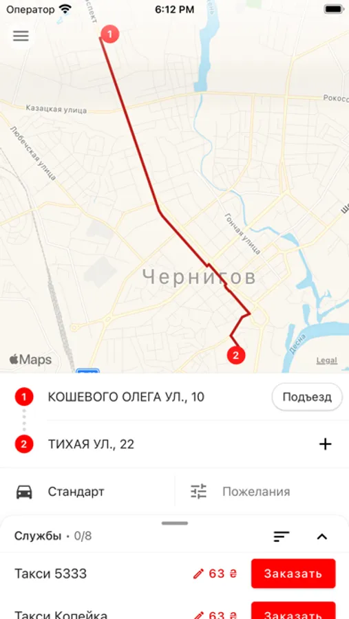 Приложение "Такси Чернигов" позволяет сравнивать стоимость поездки сразу в нескольких службах такси (на момент публикации доступно 10 служб города Чернигов). Для удобства сравнения доступна возможность сортировки служб по стоимости поездки, рейтингу (процент вывоза), названию.