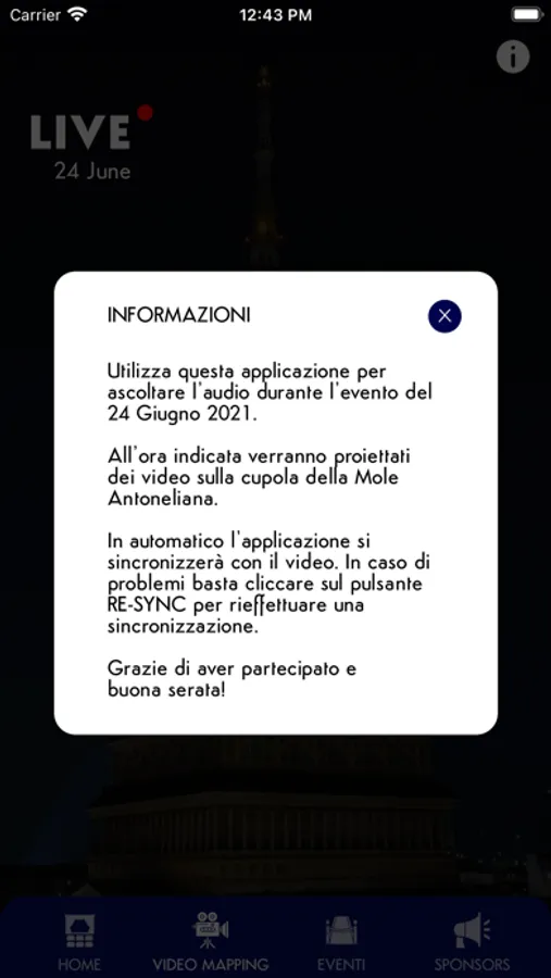 L’applicazione consente di ascoltare in sincrono la colonna sonora degli spettacoli proiettati sulla Mole Antonelliana di Torino, in occasione della “Video Mapping Experience” per i 20 anni del Museo Nazionale del Cinema.