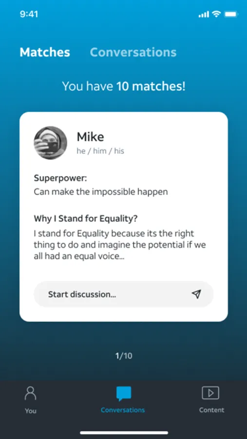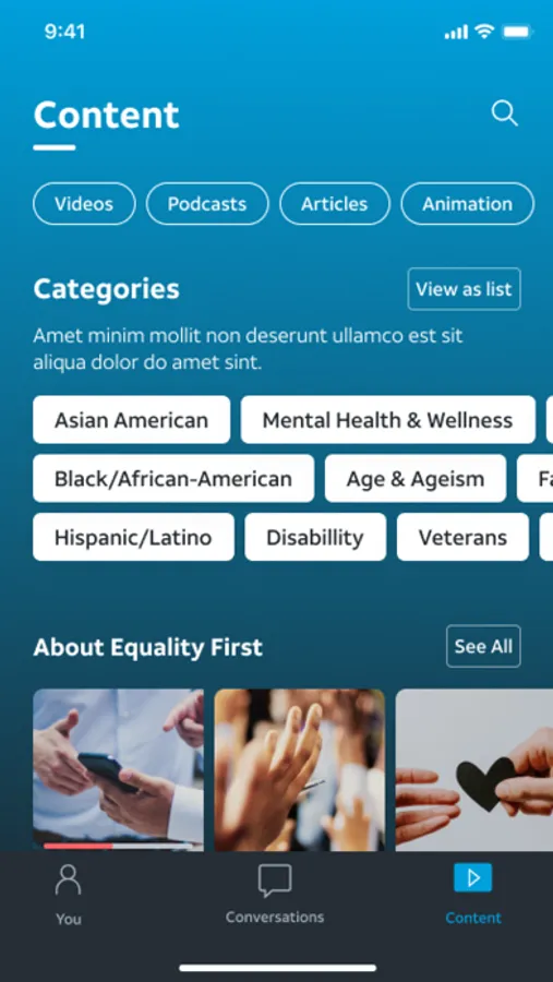 Our Mission: AT&T values the uniqueness of every employee. There are visible and invisible qualities that make us who we are, and with the Equality First + app we aim to bring those qualities to life through original programming, entertainment, podcasts and more. All with the goal of fostering equality and connection across the company
