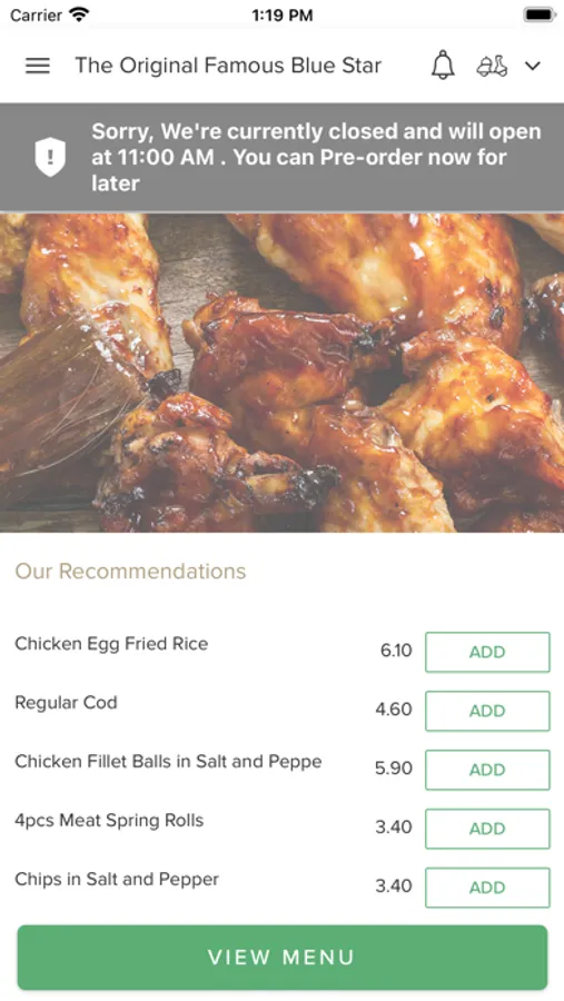 Here at The Original Famous Blue Star we are constantly striving to improve our service and quality in order to give our customers the very best experience. As a result, we are finally proud to unveil and introduce our latest improvement, our new online ordering app! You can now relax at home and order your favourite, freshly prepared meals from The Original Famous Blue Star, online. You can even pay online!The Original Famous Blue Star in Liverpool will always be offering great food at affordable prices. Please feel free to browse our new app and place your order online. Remember to check our new online ordering site to get up to date prices and exclusive special offers, limited to our online customers only!