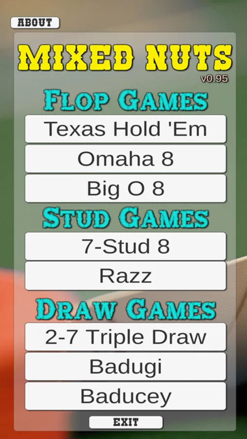 Mixed Nuts was developed to help both poker dealers and players read poker hands in the "Mixed" games.