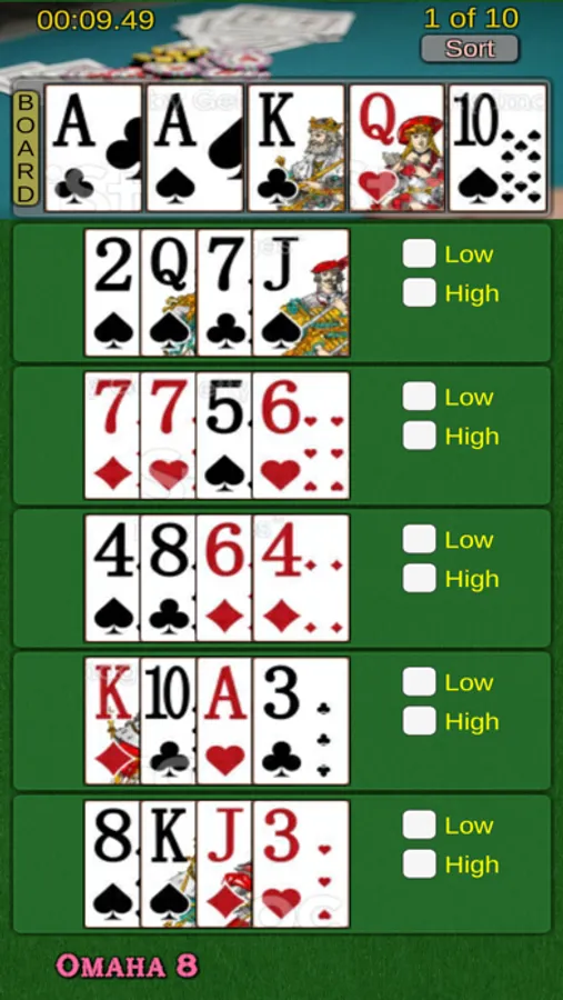These games, such as "Omaha Eight-or-better", Razz, and Deuce-to-Seven Triple-Draw are not as common as Texas Hold 'Em. Nevertheless it's important to be able to read the hands in an efficient and accurate manner.