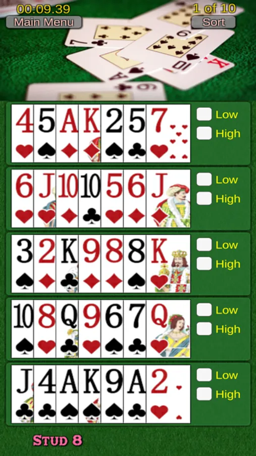 Random hands are given to players and you must determine which of them are eligible to win the pot. In split-pot games, such as Stud Eight-or-Better and Baducey it's very common to have two or more winners in each hand.