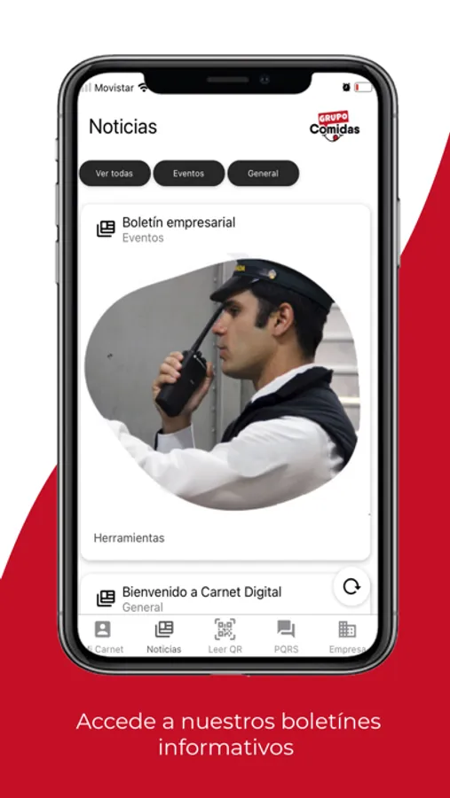 La aplicación móvil permite además de la carnetización institucional de Comidas Especializadas S. de R.L., compartir boletines informativos a todos los colaboradores, asistir a las solicitudes por parte del área respectiva, todo esto para mejorar los niveles de comunicación al interior de la organización.