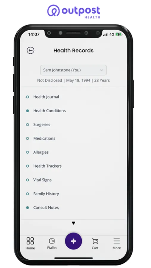 Outpost Health surrounds you with a personalized circle of care. Plus, full access to your personal health records, prescription tracking, symptom monitoring and more.
