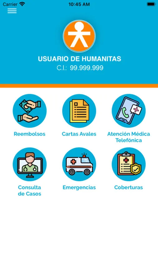 - Acceso rápido a las líneas de atención telefónica de Humanitas Administradora de Riesgos (Servicio de Orientación Médica Telefónica, Atención Medica Domiciliaria y Ambulancias).