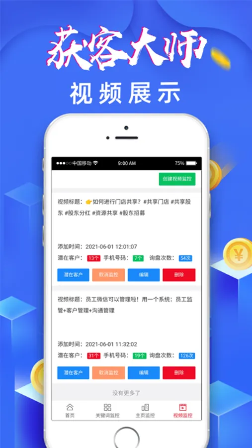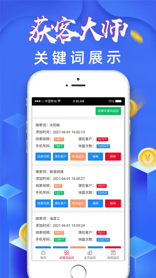 获客大师是一个人工智能+大数据筛选,智能监控截流同行意向客户,实时监控同行,一键获取客户,精准追踪询盘,视频数据跟踪。