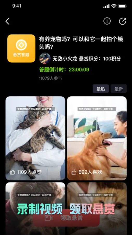 7、参与视频话题,获取悬赏,博得心仪的Ta的关注;