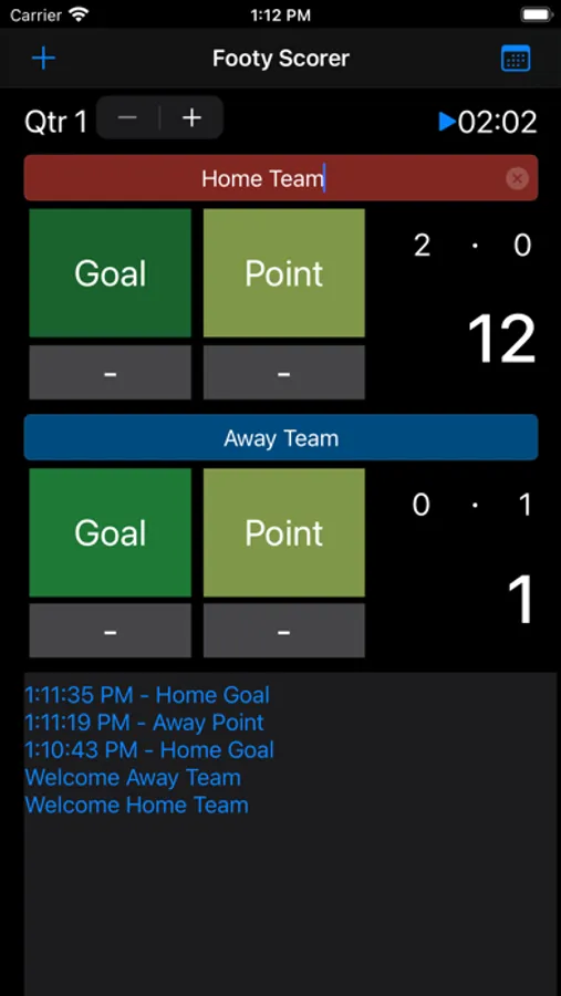 Also perfect for keeping track of footy games played in non-conventional ways. Want to play 4x35 minute quarters over 3 weeks? Why not! Play the game as you wish. This app will help you keep score any way you choose to play.