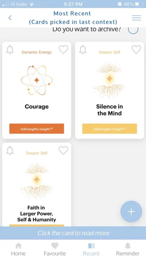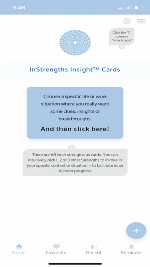 Some features: The app helps you pick cards, add some inner strengths to your favorites, set up reminders where the inner strength card you picked can pop up as a reminder. You can pick many cards for a single question, or many times in the day. Make a connection to the cards and you will find your own rhythm with using these cards.