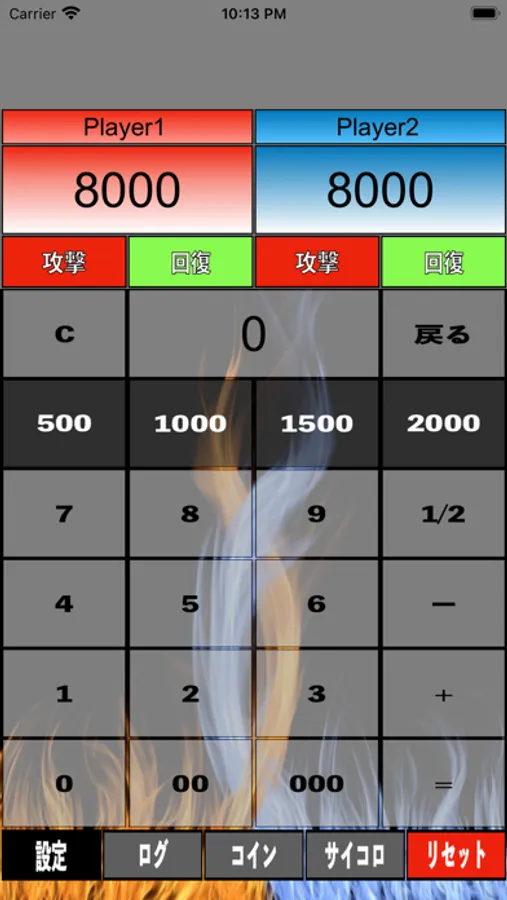 さらに500、1000、1500、2000のショートカットボタンがあり、瞬時にライフ計算をすることが可能です。