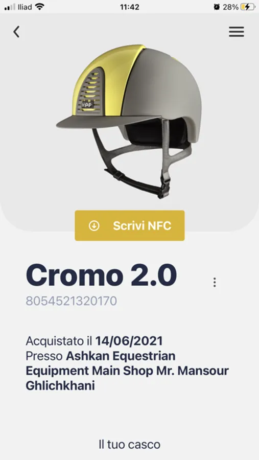 Your helmet is equipped with an NFC device placed under the front panel. Through the KEP APP you can