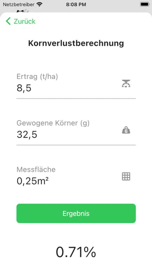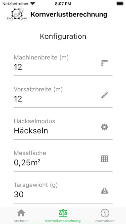 Die App zur Kornverlustberechnung von Pio´s Grain hilft dem Anwender, die ermittelten Verlustkörner in gewogenen Gramm, schnell und einfach