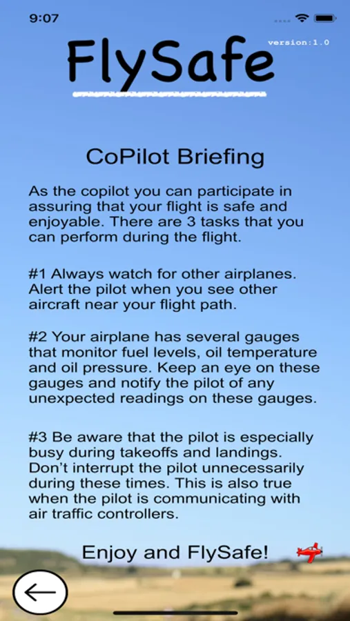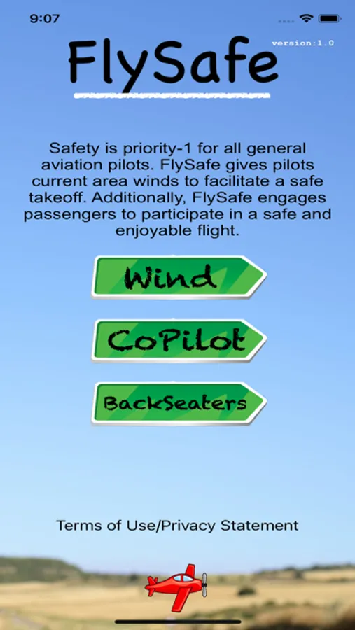 Safety is priority-1 for all general aviation pilots. The FlySafeApp gives pilots current area winds to facilitate a safe takeoff. Additionally, FlySafe engages passengers to participate in a safe and enjoyable flight.