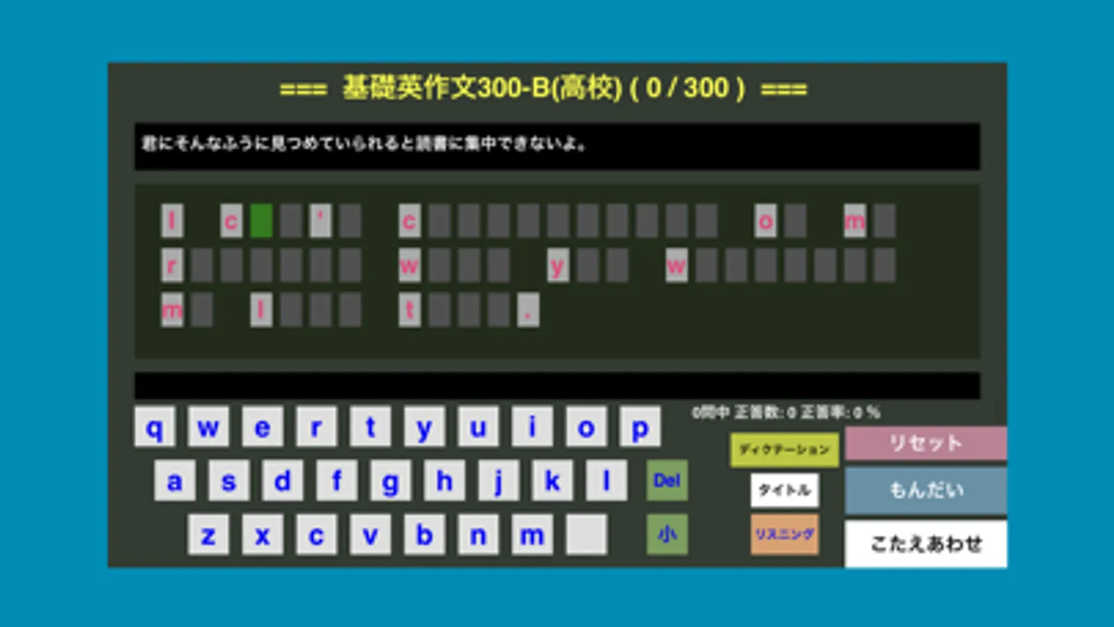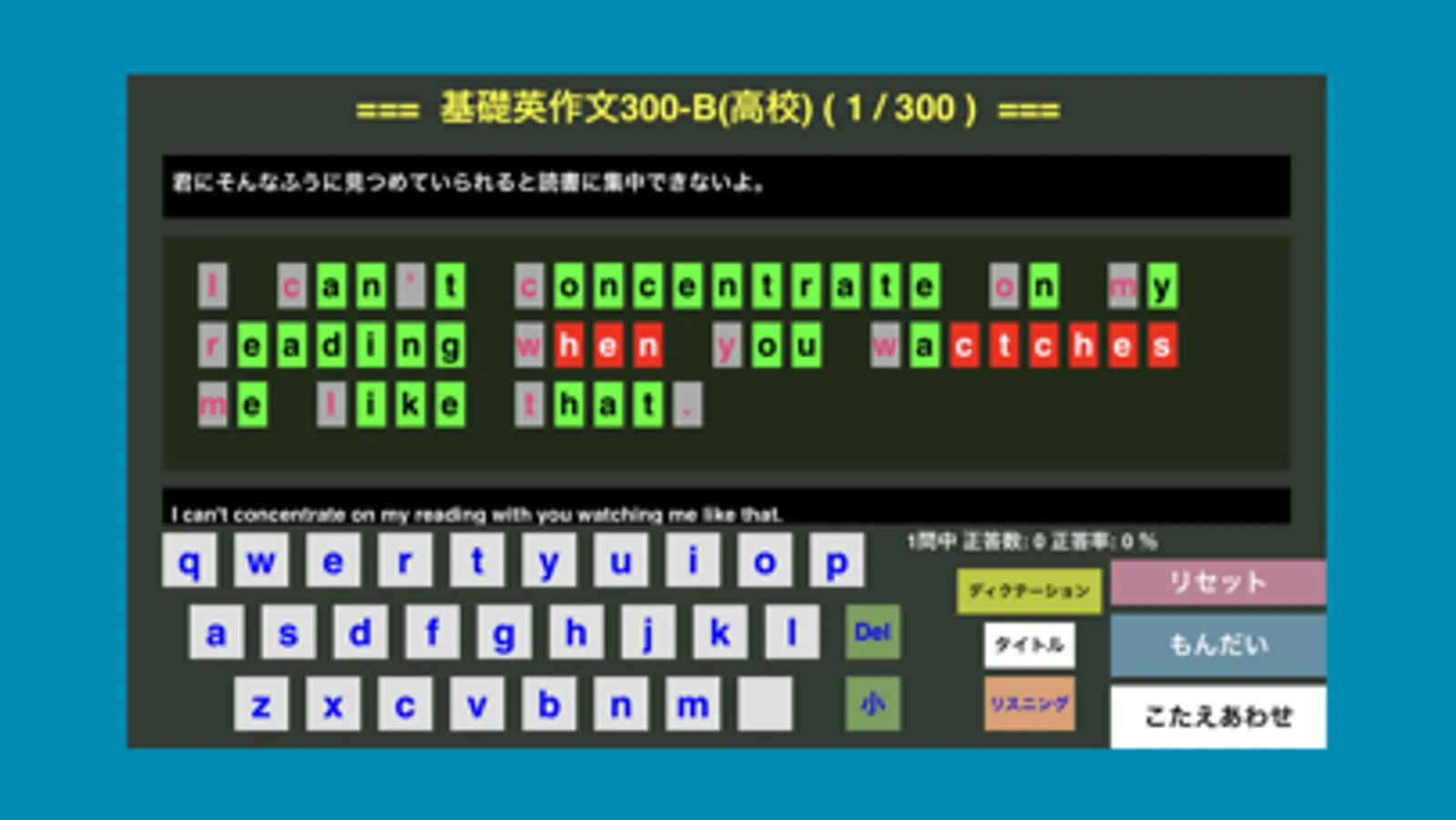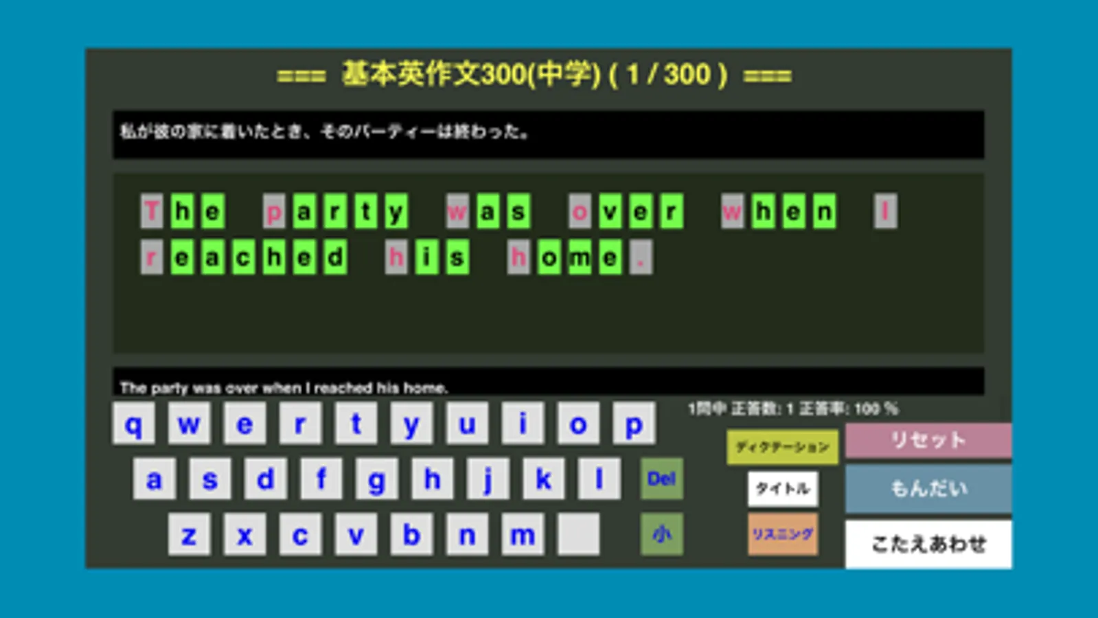 英作文の練習アプリです。中学初級レベルから高校標準レベル(英検5級〜英検2級レベル)まで、1500題以上の豊富な練習問題で、十分な量の問題を用意しています。スペル入力なので、単語力も強化できます。また、リスニング機能がありますので、「ディクテーション」の練習にも役立ちます。英作文の上達には、例文暗記も大変重要になりますが、暗記が苦手な人にとっては、特に本アプリが大変役に立つでしょう。作者の私も暗記が苦手な方なので。。。また、高校受験から大学受験までフォローしています。。。