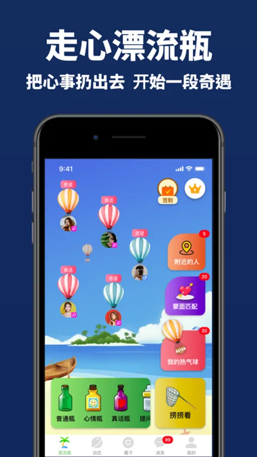同时,《漂流瓶》也是一款女生优先的交友软件,女生享有主动权,避免被骚扰,从而提升整体交友氛围,方便大家真真实实的交朋友,开启一段属于你们的美好回忆。