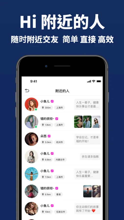 一款为了实现真实、用心交友而设计的,陌生人交友软件。在这里,你可以通过多种维度进行筛选,寻找自己中意的人。每一个注册用户,都需要尽量完善自己的个人信息,并确保真实,从而让大家放心交友,分享开心快乐,拒绝孤独...