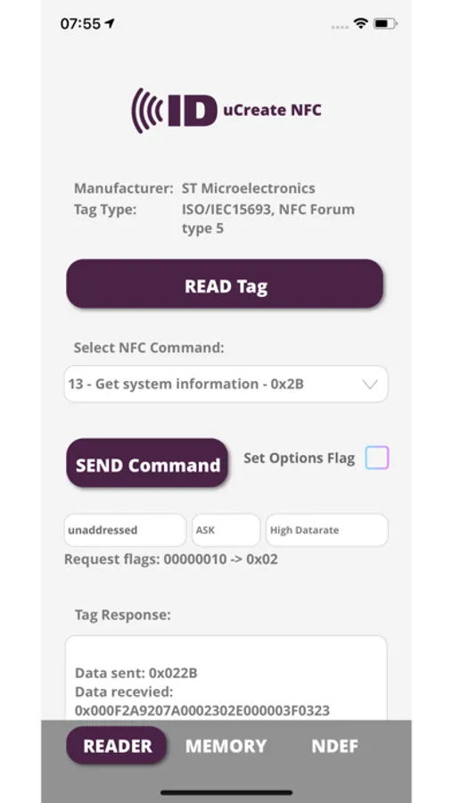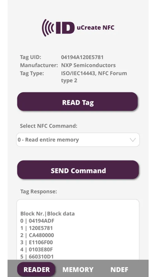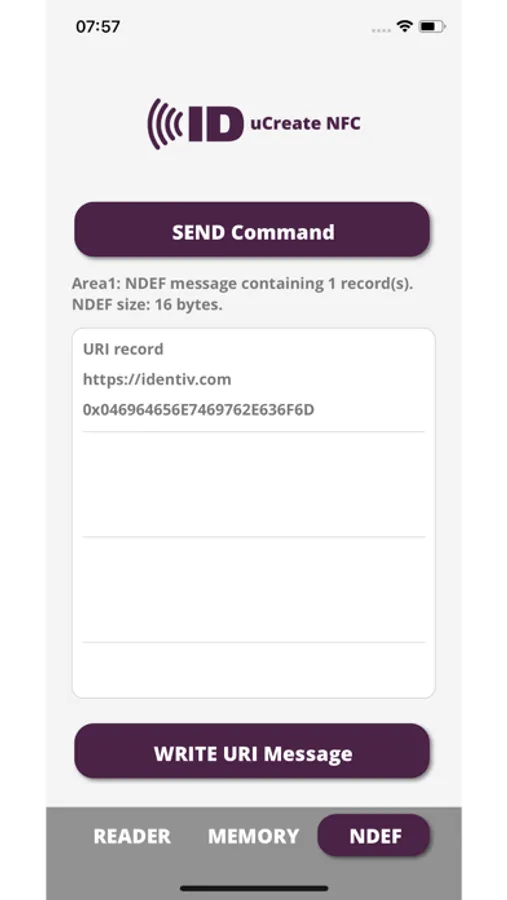 Our all-in-one NFC mobile application platform makes it easy to develop, prototype, test, and successfully launch your own NFC-enabled applications. Use the app to read and write basic commands to NFC Forum tag types 2, 4, and 5. The app even lets you store and read NDEF messages with a URI record.
