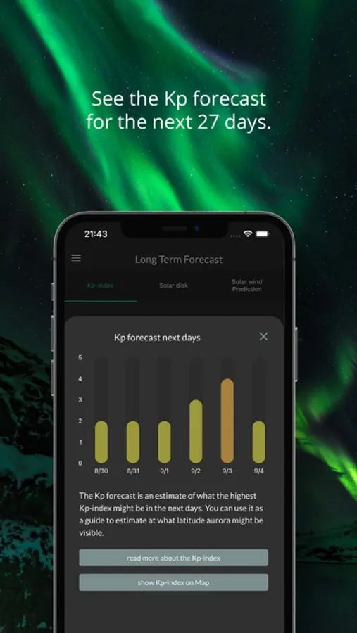 Use this app as your personal Northern Lights guide. Our mission is that you will learn from our app and will grow as a real aurora borealis hunter. Not only tourists or photographers but also local people, and guides should work with this app. If you are out searching for an app that will just ping you when there is visible Northern Lights this app will also be the best. We don't just use the solar wind data chance and give it to you, we developed our own algorithm in the field and tested it for over a year. We can conclude that our aurora forecast app gives the best user interface and our aurora alerts are on point so you are on time when you need to go outside.