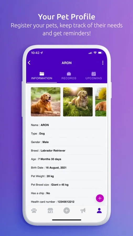 Register your pets and keep track of their allergies, vaccinations, potty habits, behavior, etc. You can share your pets with other users (joint ownership of pets) and get reminder alerts for their appointments, treatments, and many more.