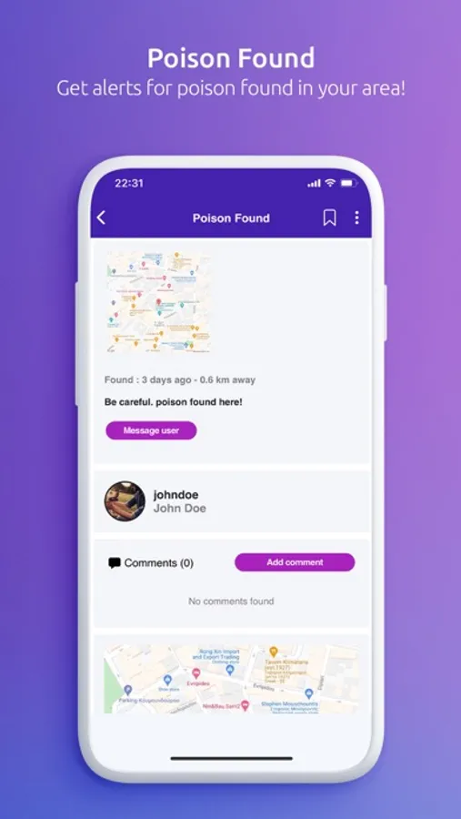 Dangerous areas for pets where there’s poison? Get alerted or alert others who walk their pets there.