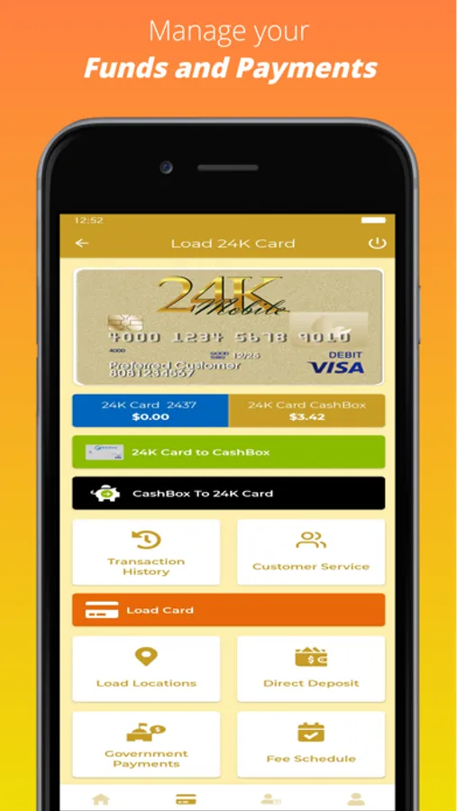 24K Card accounts also include an extremely robust eWallet (CashBox) with a Virtual Checking Account (24K Card Checking) that integrates with your 24K Card, enabling you to transfer funds from one account to the other in real-time. 24K Card Checks can be utilized to pay bills via email to anyone with an email address nationwide.