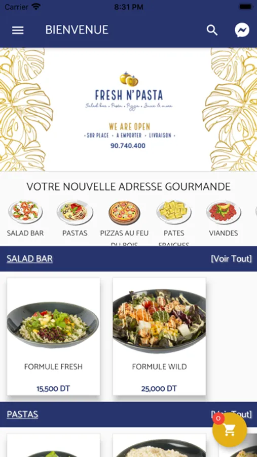 Pâtes , salades , pizzas au feu de bois , jus frais et dessert maison