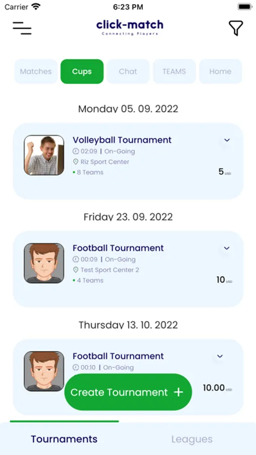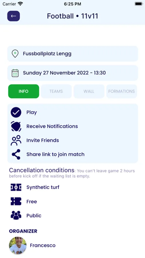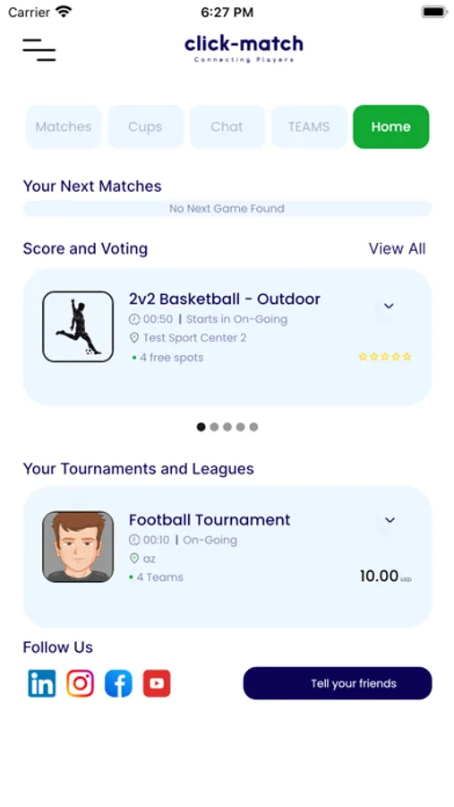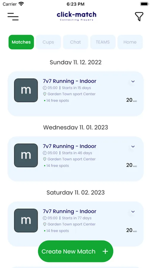 Members of the community can either sign up to existing matches in their area or organise private or public games with their friends.