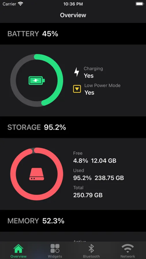 - Check memory and storage usage information