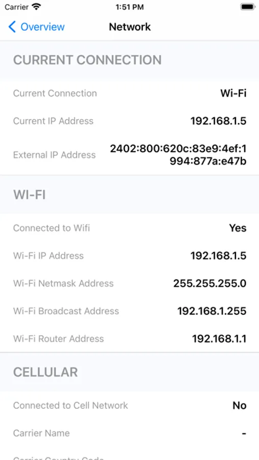 - View network and carrier support