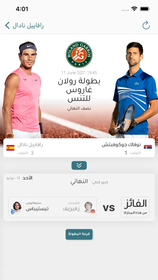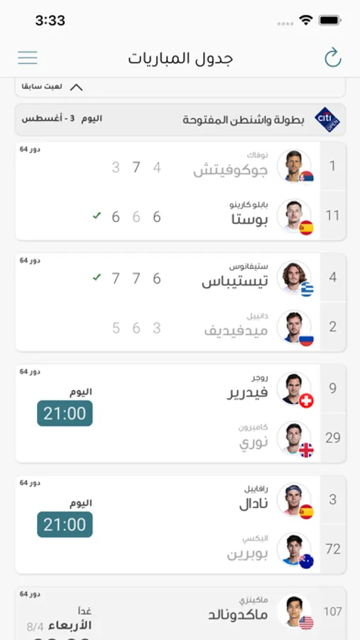 - تعرف على جدول مباريات التنس اليومي. تابع النتائج والاحصائيات بشكل مباشر، او تعرف على القنوات الناقلة.